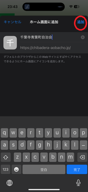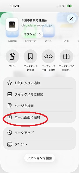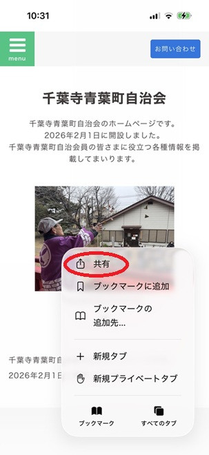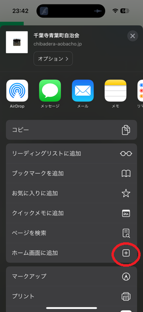 千葉寺青葉町自治会ホームページをスマホのアイコンにする方法(iPhone編)